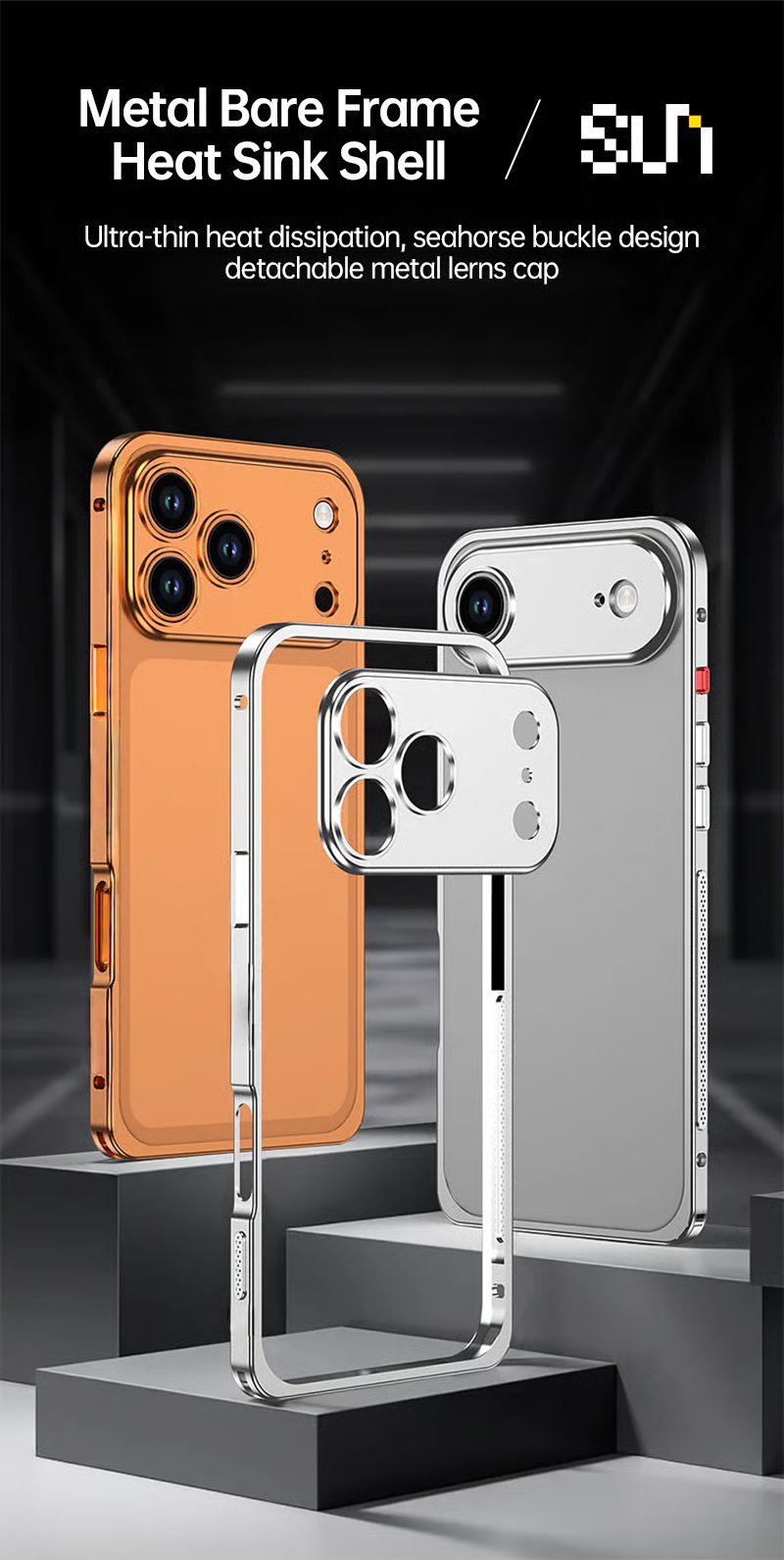 CaseSun-Detachable full-frame metal lens cover for iPhone 17 Pro Max CaseSun aluminum cooling bumper.