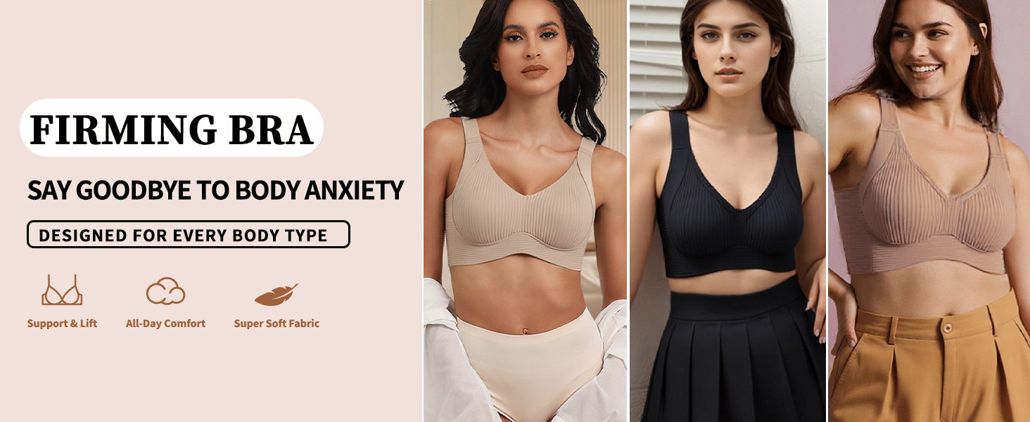 Regular bras can lead to sagging breasts, shoulder pressure and easy accumulation of back fat when worn for long periods of time, as well as poor breathability, making them very uncomfortable in the summer and during activities. Choose one of our non-ring top-supporting bras and enjoy all-day ease, natural support and a perfect backline!